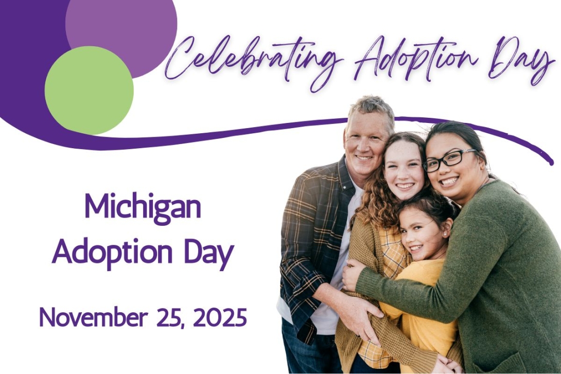 National Adoption Month is recognized each November to raise awareness about adoption, emphasize the importance of permanent, loving homes for children, and celebrate the families who make adoption possible. For the past 20 years, Michigan courts have joined this nationwide effort by hosting “Adoption Day” celebrations under the theme “Giving Thanks for Families.” Each year, approximately 30 Michigan counties participate, finalizing more than 100 adoptions statewide.